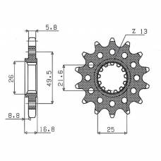 Передняя звезда для мотоцикла Honda 206816JT (525 цепь)Honda CB600 F-7,8,9,A,B,C,D..