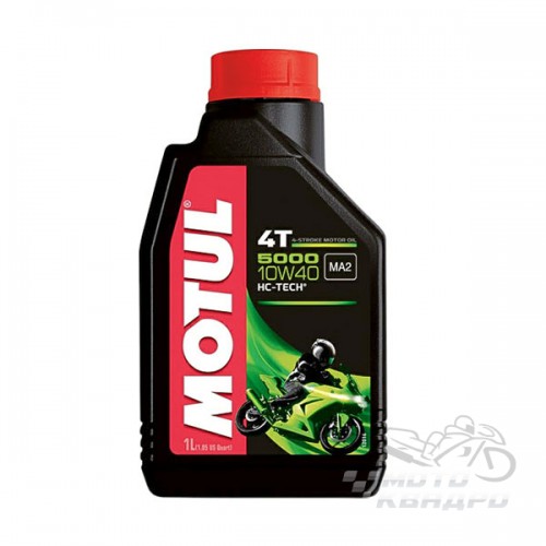 Масло полусинтетическое Motul 5000 4T 10W40, созданное по технологии HC-TECH®, для дорожных и внедорожных мотоциклов, эндуро, триал, оснащенные 4-х тактными двигателями с интегрированной и неинтегрированной коробкой скоростей и сцеплением в масляной ванне или «сухим». Предназначено для двигателей, отвечающим требованиям норм EURO 2 или EURO 3, оснащенных системой очистки выхлопных газов: катализаторы, рециркуляция выхлопных газов.